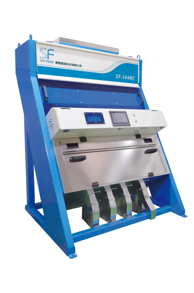 色彩選別機SF-144RC,使用日本進口百萬畫素鏡頭,每秒可掃描3,000次,能解析出0.17mm以上的異色點,