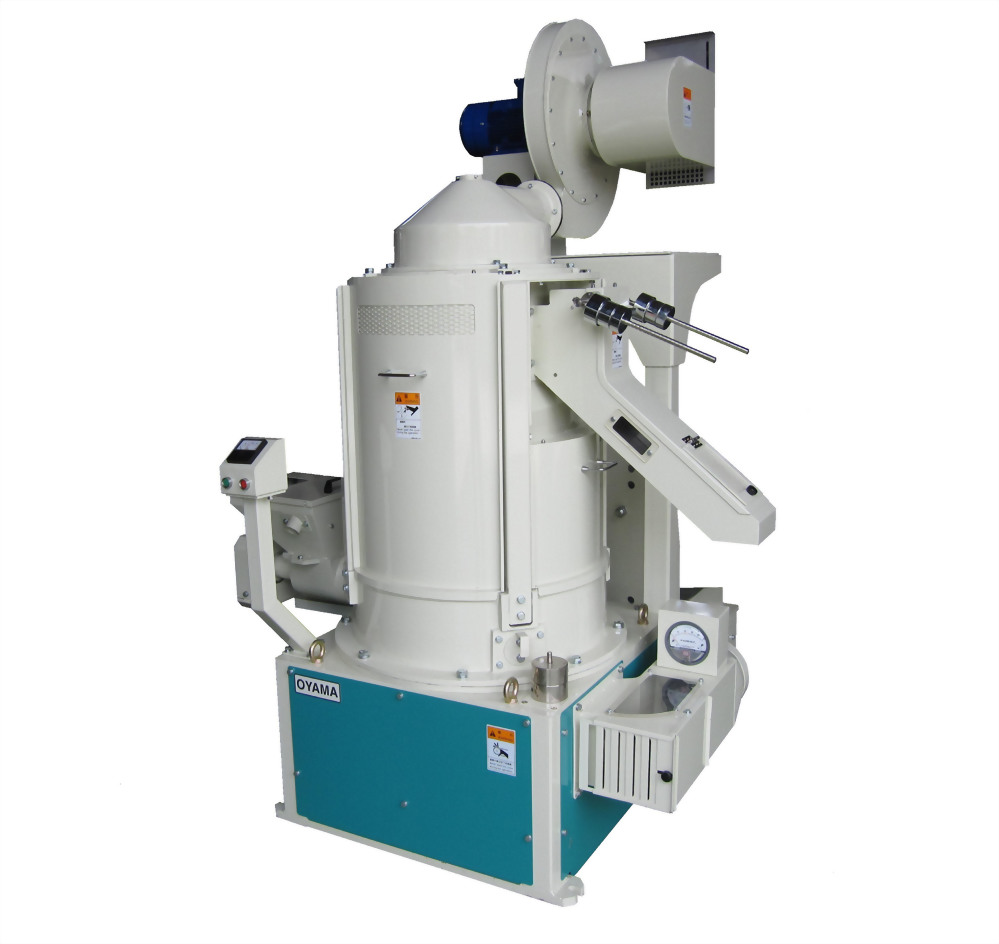 直立式滾筒主軸心,由下而上方式作經滾筒摩擦方式脫糠為精米後段加工機器。